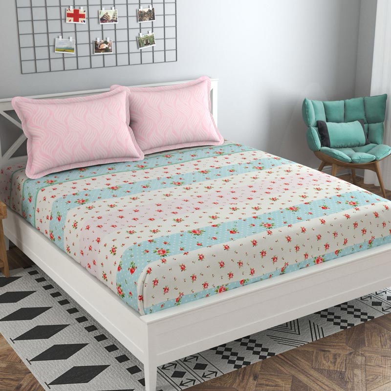 Perfect Fit: Explore our extensive range of glace cotton, blended, and microfiber bedsheets in double, queen, and king sizes to suit every need. Enhance your bed with patterns and designs that reflect your personality and style.
