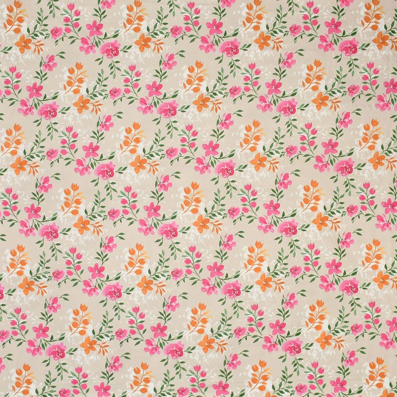 Floral Print Beige Pink Colour Glace Cotton 160TC Queen Size Double Bedsheet with 2 Pillow Covers